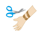 ![]() はがす前にテーピングを十分に濡らし、剥がれ易くします。 ※入浴時にしっかりと濡らしてから剥がすこともお薦めです。 ![]() テーピングが周回している所などは ハサミなどを使い、幾つかに切断し、 剥がれ易くします。 ![]() テープを剥がす際は、体毛の方向に逆らわず 皮膚の引っ張られる部分を指で押さえて、 テープを折り返して、できるだけゆっくり はがします。 |
