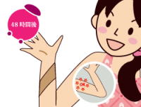 | Aそのまま触れずに 48時間放置します。 48時間以前であっても 発疹、発赤、かゆみ、水 疱、刺激など、異常があ った場合、ただちにテス トを中止してください。 症状悪化がご心配な方 は皮膚科医の診療を受 けていただくことをお薦 めします。 |