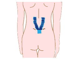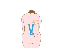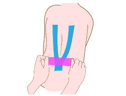 AY字型にカットしたテープの基部をお尻の割れ目の上に固定する。